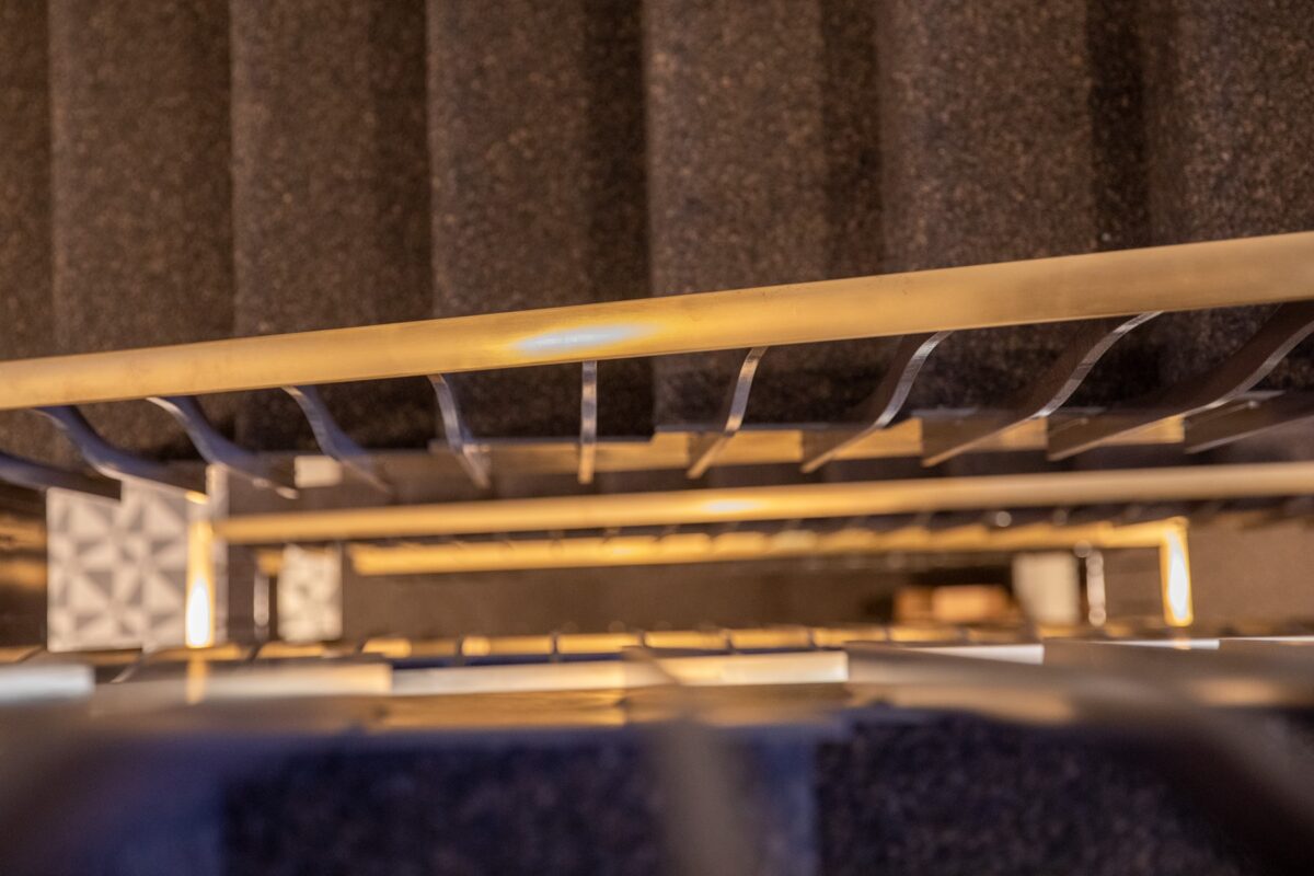 Arbeiten: Allg. Metallbauarbeiten (Treppenhausgeländer, Restauration Balkongeländer, Logo Alpina, Messingintarsie)